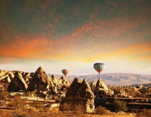 • 2 noites de hospedagem na Capadócia com café da manhã e jantar, nos hotéis mencionados ou similares